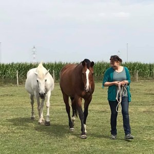 Omdat ik gericht wou kunnen verder werken met wat de paarden toonden en ik geen half werk doe daarin, besliste ik de opleiding shiatsu voor paarden te volgen in de Belgische School voor Paardenshiatsu bij Dominique Bergmans. Een wereld die open ging, een transformerende reis: eerst als student en later als assistent, om uiteindelijk zelf te mogen lesgeven en daarbij de opgedane kennis en waarden, die ik zo koester, verder te mogen doorgeven.